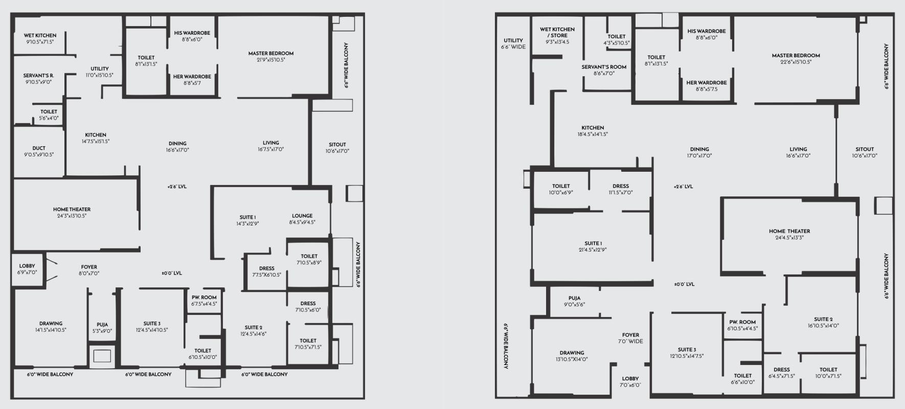 Flat Configuration Saleable Area (sqft) 1, 3 4 BHK, East 6666 2, 4 4 BHK, North 6666 Amenities and Facilities